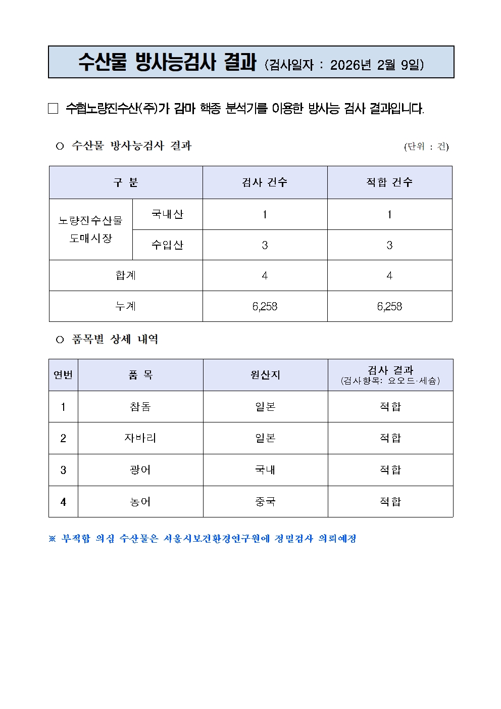방사능 검사결과
