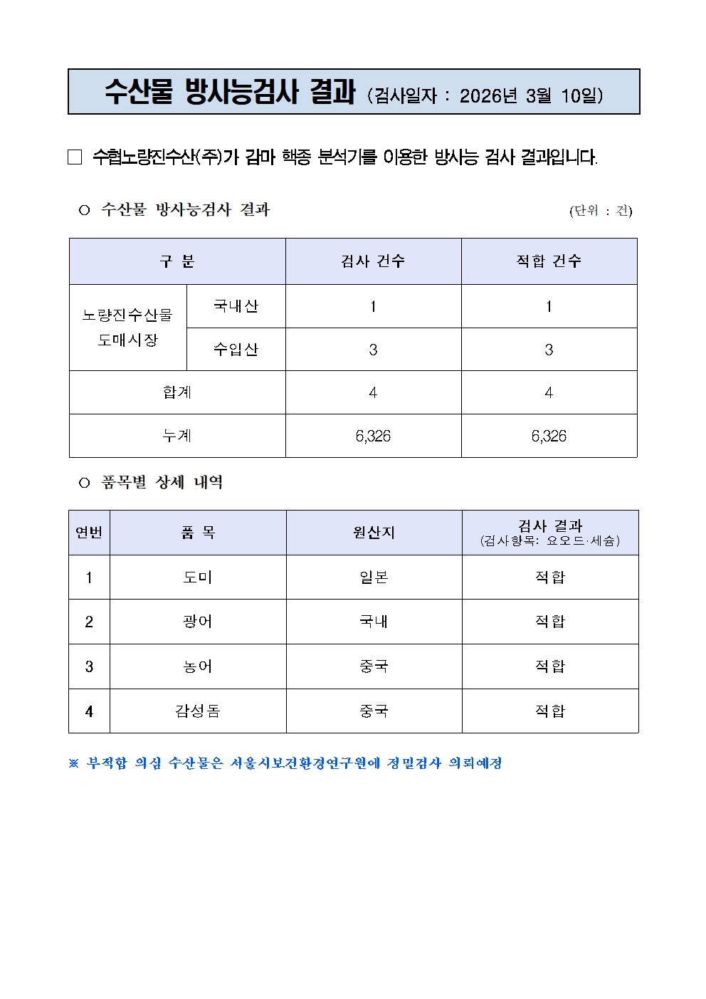 방사능 검사결과