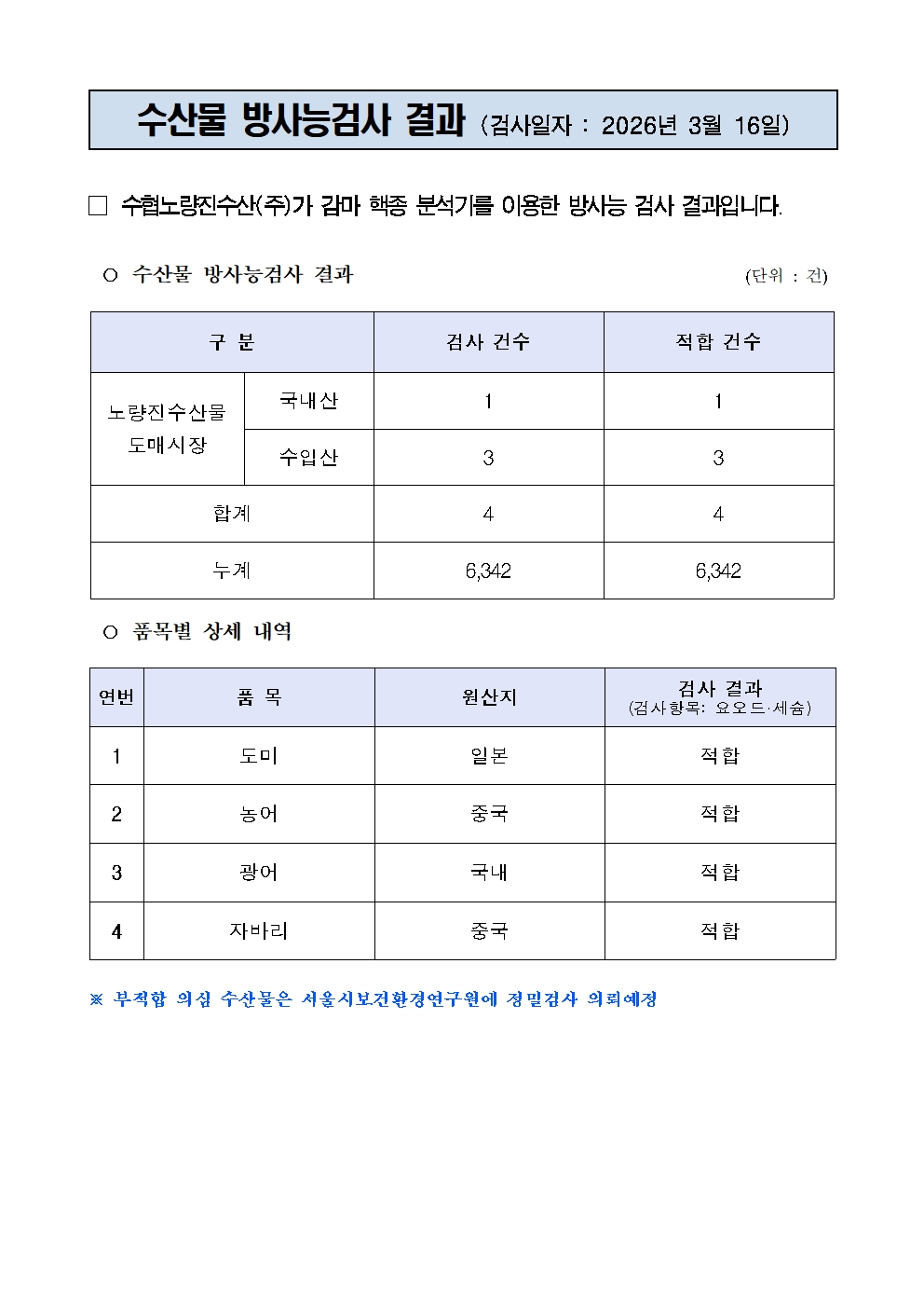 방사능 검사결과