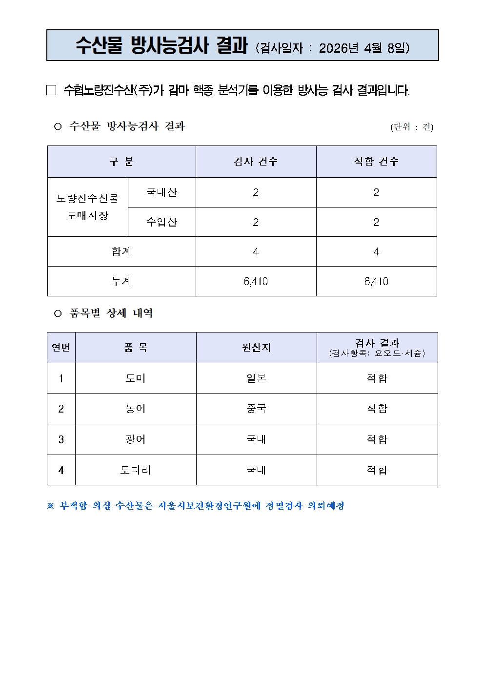 방사능 검사결과