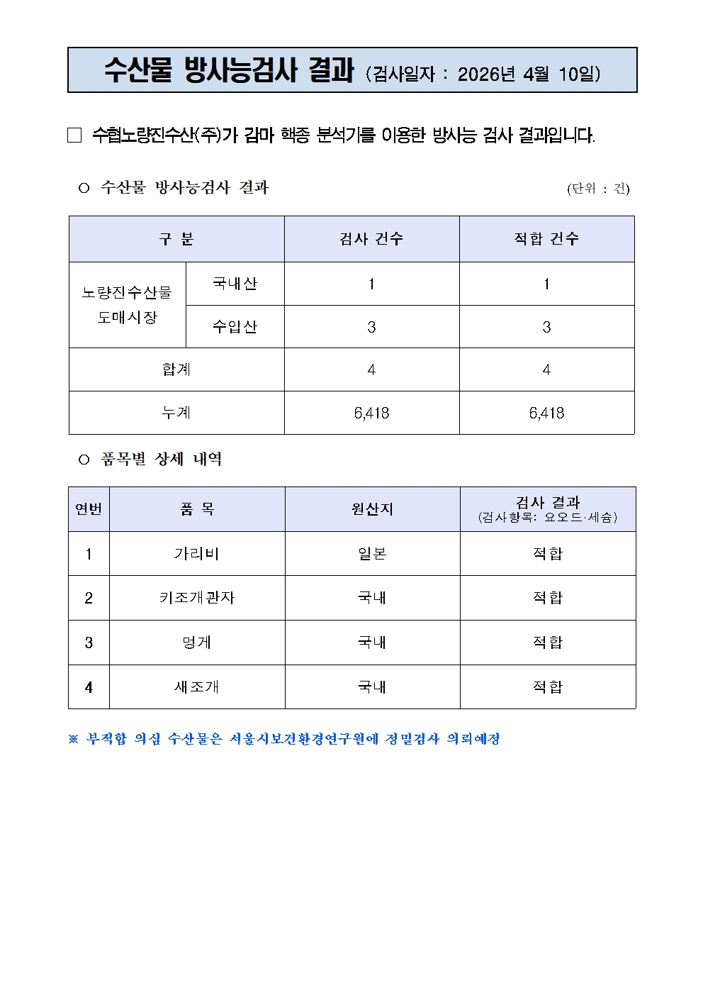 방사능 검사결과