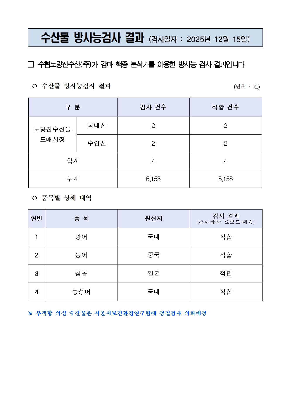안전한 수산물 유통을 위해 매일매일 방사능 관련 검사를 진행합니다.