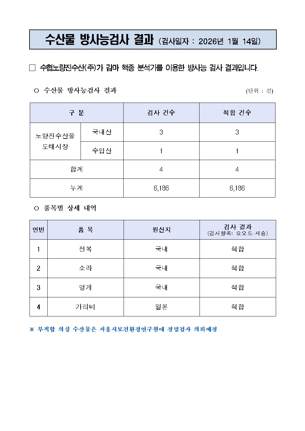 방사능 검사결과